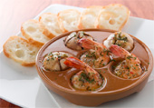 エスカルゴ風に味付けしたえびとマッシュルーム。
